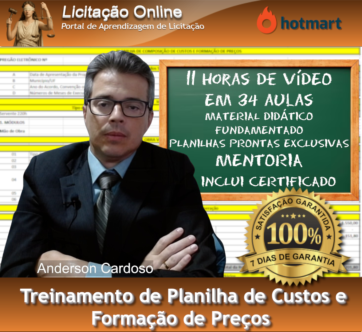 São 34 aulas e 11 horas de conteúdo original com material por escrito completo, exclusivo e fundamentado de cada fórmula da PCFP de forma bem didática elaborada com muito carinho pelo próprio instrutor compartilhando 15 anos de experiência analisando planilhas com você.